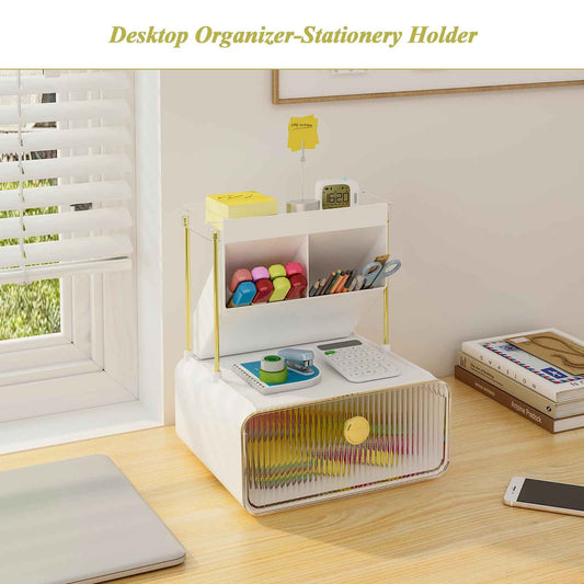 FOLLOWIN Bathroom Counter Organizer with Drawer,Dresser Top Organizer with Make Up Brush Holder,Makeup Shelf,Vanity Organizers,Cosmetic Perfume Organizer,Clear