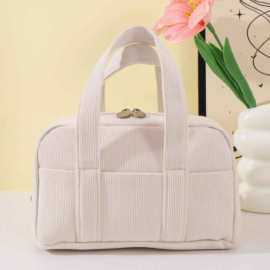 LYDZTION Makeup Bag, Makeup Organizer Small Travel Toiletry Bags for Women, Cosmetic Bag Cute Corduroy Makeup Travel Bag, Beige