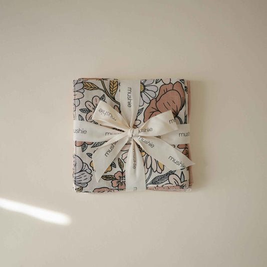 mushie Muslin Organic Cotton Washcloths 5-Pack (Retro Flowers Combo) | Soft Wipes for Baby Cleanups and Bathing