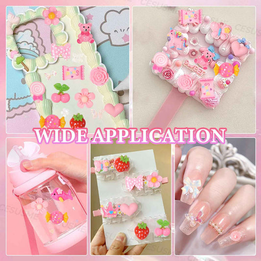 330 Pcs Junk Case Charm Kit, Bear Candy Cartoon Junk Phone Case Charm, Pink White Moon Star Pearls for Junk Cases, Flatback Resin Slime Charms for Nail Art Supplies Craft DIY