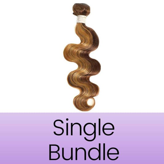 ALHER 4/27 Honey Blonde Highlight Body Wave Ombre Human Hair Bundle 14 Inch Brown Colored Bundles 12A 100% Brazilian Virgin Remy Human Hair Soft Wavy Weave 4/27 Highlight Color