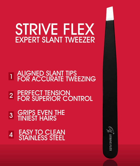 Strive Flex Tweezer Eyebrow Hair Removal Tweezers for Men & Women, Great Precision splinter tweezers and Ingrown Hair Removal Professional Stainless Steel (Black)