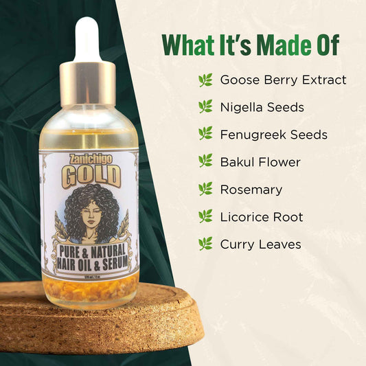 Zanichigo Gold Hair Oil – Fenugreek Strengthening Serum for Dry, Damaged, Frizzy & Coarse Hair | Anti-Hair Fall | Anti-Hair Loss Hair Growth Oil Treatment | All-Natural | 2 Ounce