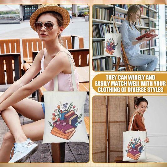 Qinyoung 6 Pcs Book Lover Gifts for Women Readers Canvas Bag Back to School Reusable Canvas Bag Tumbler Bookmark for Women Reading Librarian Bookworm Kitchen Library Club Bookish Gifts