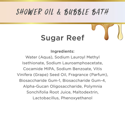 LaLicious Sugar Reef Shower Oil & Bubble Bath - Shower Cleanser with Topical Probiotics & Grapeseed Oil, No Parabens (10oz)