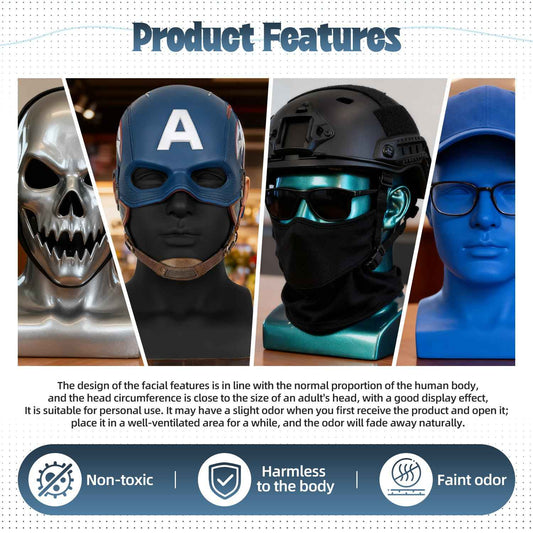 Male Mannequin Head, Metallic Gray Male Mannequin Head with Stand Professional Manikin Head, Bald Training Head for Display Wigs (Gray)