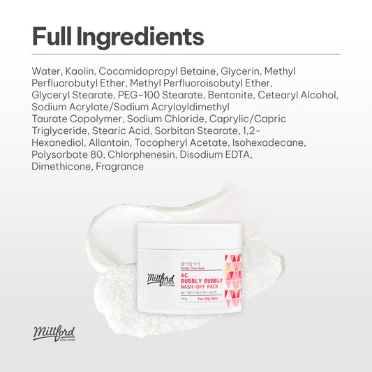 Millford AC Bubbly Bubbly Wash-Off Pack 125g/4.4Oz, Kaolin, Deep Cleansing, Acne Prone Skin, Bubble Wash, Exfoliating, Bubble Mask, Removing Sebum and Dead Skins, Instant Bubbles Pop up
