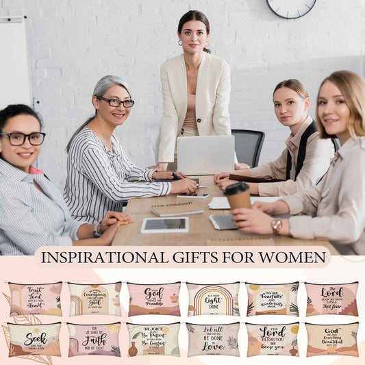 Geelin 24 Pcs Christian Gifts Bulk for Women 12 Religious Canvas Makeup Bags 12 Boho Bible Verse Compact Mirrors Inspirational Church Party Gifts for Women Mother Sister