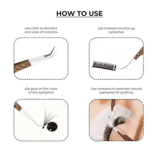 SIVOTE Lash Extension Tweezers Fiber Tips, Set of 4, Curved, Dolphin, 90 Degree & 45 Degree Tweezer, Chocolate