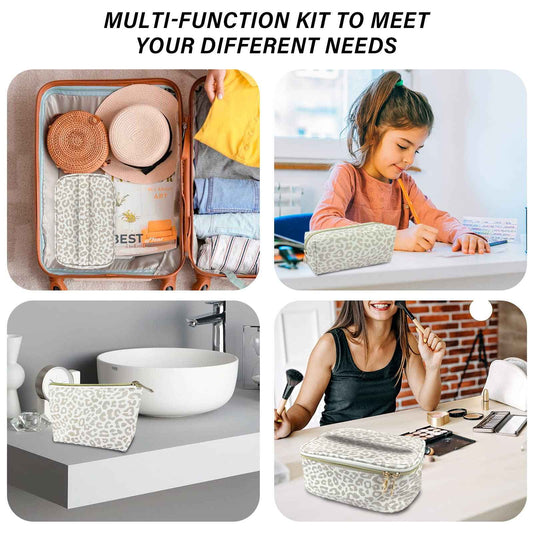 Deokke 3Pcs Makeup Bag,Travel Makeup Bag,Makeup Bags for Women,Makeup Brush Bag,Large Capacity PU Cosmetic Bag,Waterproof and Durable-Grey White Leopard Cheetah Pattern