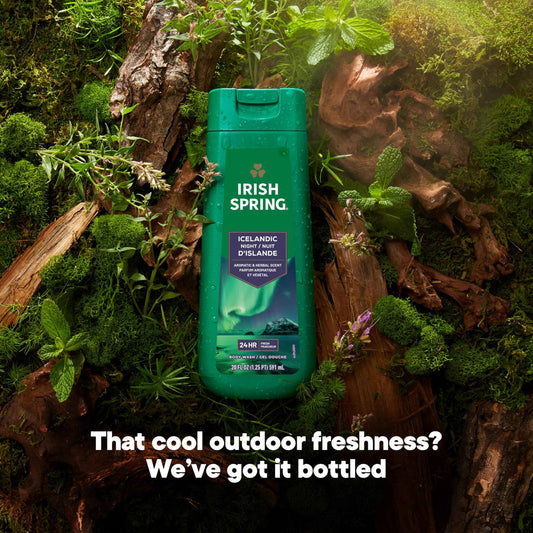 Irish Spring Icelandic Night Moisturizing Face and Body Wash for Men, 24 Hour Fresh, Paraben Free, Aromatic and Herbal Scent, 20 fl oz Bottle (Pack of 4)