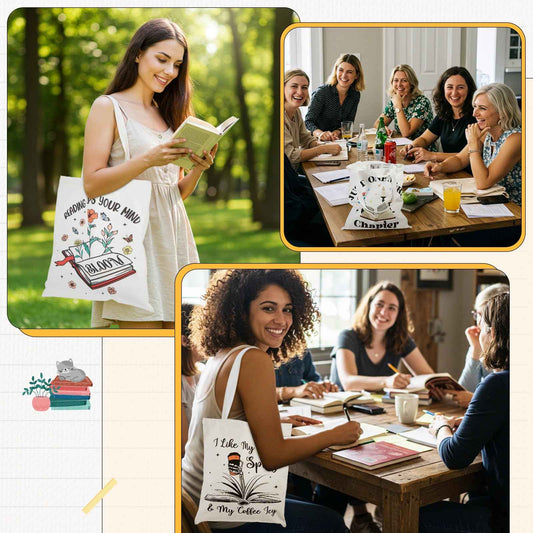 Paterr 12 Pcs Book Club Gifts Bulk Reading Canvas Tote Bag with Makeup Bag Book Lovers Gifts for Women - Reading Accessories, Librarian, Bookish, Readers, Author, Library Present