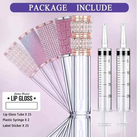 AMORIX 25 Pack Diamond Lip Gloss Tubes with Wand 5ml Empty Rhinestone Lip Gloss Containers Cute Lipgloss Bottles Crystal Lip Gloss Supplies Kit + 2pcs Syringes + Labels for DIY Lip Gloss Base