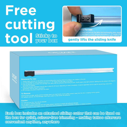 OK TAPE Tattoo Aftercare Bandage with Sliding Cutter(6 in x 6 yd),Second Skin Tattoo Cover Up Patch for Faster Healing and Skin Recovery,Waterproof Transparent Latex-Free Film,Tattoos Supplies