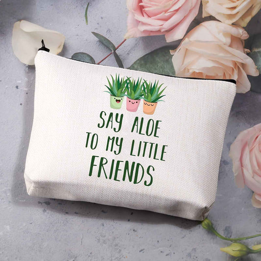 BDPWSS Plant Lover Makeup Bag For Gardener Plant Mom Succulent Planters Crazy Plant Lady Gifts Say Aloe To My Little Friends(Say aloe friends)