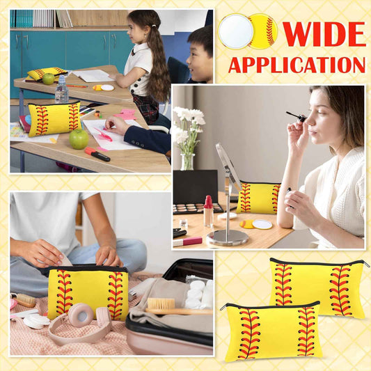 40 Pcs Softball Party Favors Softball Gifts for Team Girls Bulk Include 20 Softball Cosmetic Bag 20 Softball Compact Mirror Softball Sport Round Pocket Portable Mirror for Women Girls