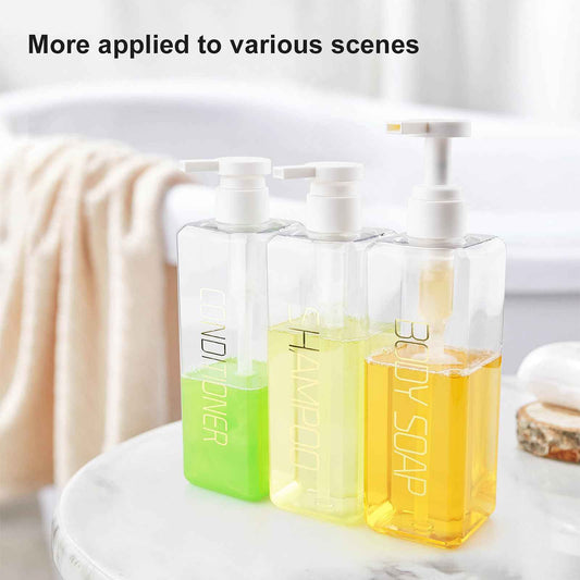 Shampoo and Conditioner Dispenser Shower Soap Bottles 3 Pack 550ml/18.6oz Refillable Shampoo Pump Bottle Dispenser Plastic Empty Body Wash Dispensers with Stylish Permanent Labels for Bathroom (Clear)