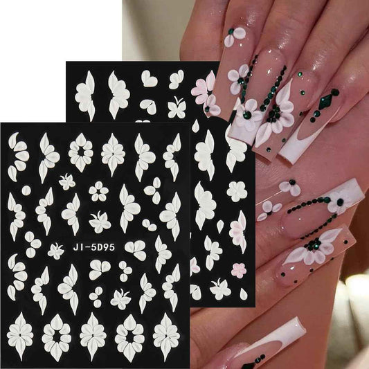 Fcozpjk Flowers Nail Stickers 4 Sheets 5D Embossed Floral Nail Decals, Summer Neon Nail Design, 3D Acrylic Engraved Hibiscus Flowers Rose Butterfly Stickers for Nail Art Pegatinas Uñas