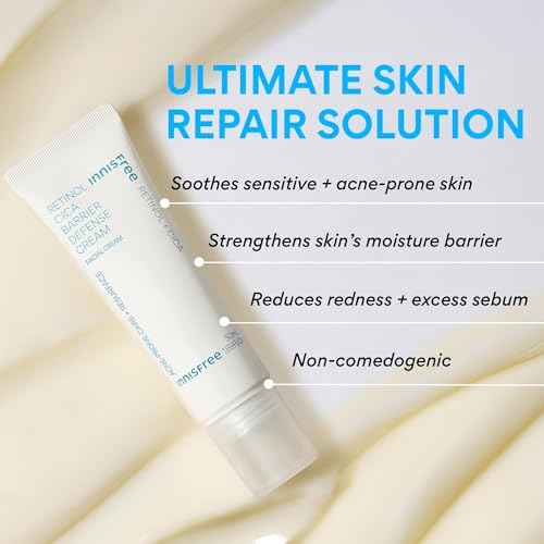 innisfree Retinol Cica Barrier Cream, Korean Moisturizer with Madecassoside for Sensitive, Acne-Prone Skin, Calming and Strengthening Formula