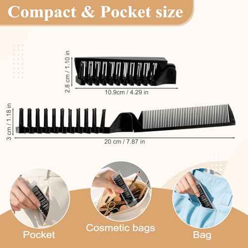 Foldable Hair Combs in Bulk, Individually Wrapped for Women and Men, Sturdy Double Tooth Hair Pocket Comb, Suitable for Travel Hotel Homeless Shelter Charity Church Black (7.8 inch, Count, 120)