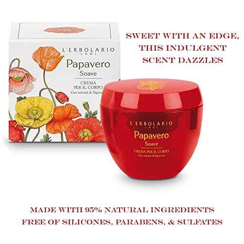 L'Erbolario Body Cream - Moisturizing Body Butter for Dry Skin - Soothing Skin Care With Vitamin E and Floral Amber Fragrance - Sweet Poppy - 6.7 oz