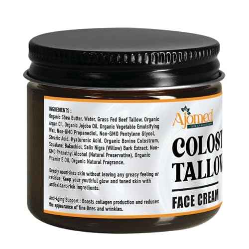 Colostrum & Tallow Face Moisturizer - tallow For Dry skin, Fine Lines & Aging ? Handmade Skincare Tallow balm for rosacea, eczema- Retinol & Hyaluronic Acid Cream, Moisturizer Face Cream Day & Night