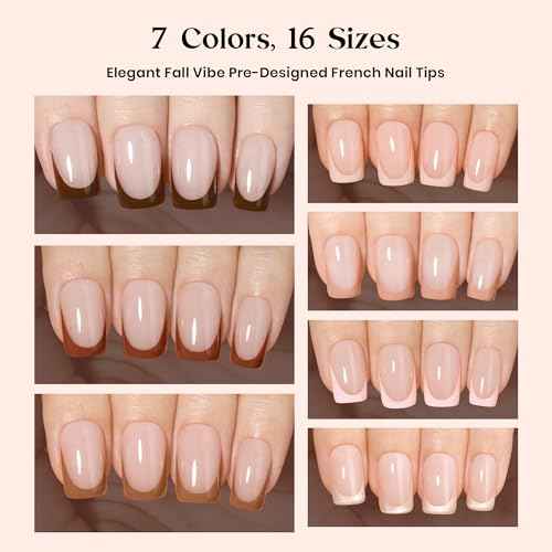 Beetles X Press Plus French Tip Nails - Mocca Mousse French | 7 Colors Short Square Press On Nails | 16 Sizes 224 Pcs Natural Salon Quality For Winter Nails