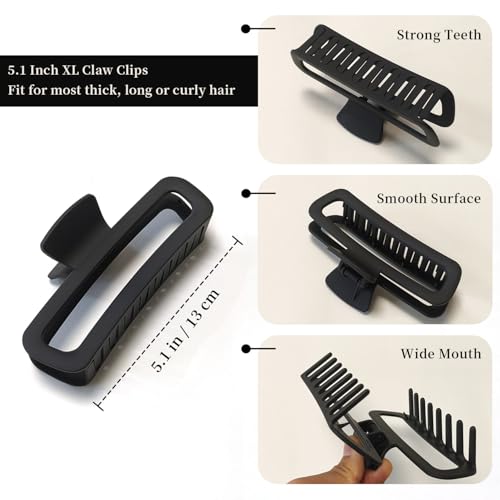 5 Inch Large Unbreakable Hair Claw Clips, No Slip Matte & Glossy Not Easy to Break Square Clip for Women Thick Long Curly Hair, 4 Pack