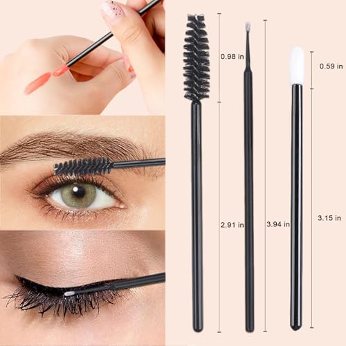 200Pcs Eyelash Extension Kit, Lash Spoolies Extension Supplies Eyebrow Brush Mascara Wands Lip Brushes Applicators Disposable Micro Swab Brushes for Lash Extensions Brow Lamination Kit, Black