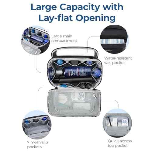 BAGSMART Toiletry Bag for Men, Wide Opening Travel Bag for Toiletries, Dopp Kit Water Resistant Shaving Hygiene Bag for Bathroom Shower, Toiletries Accessories,Travel Essentials-Black