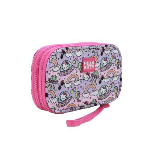 Bioworld Hello Kitty Flying Saucer Print 4" Pink & Purple Tech Cable Organizer Travel Case
