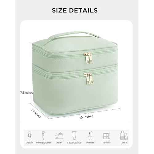 Makeup Bag for Women X-Large Travel Makeup Bag Organizer Portable Toiletry Bag Cute Makeup Bags Waterproof Leather Cosmetic Bag Makeup Case with Removable Dividers, Green