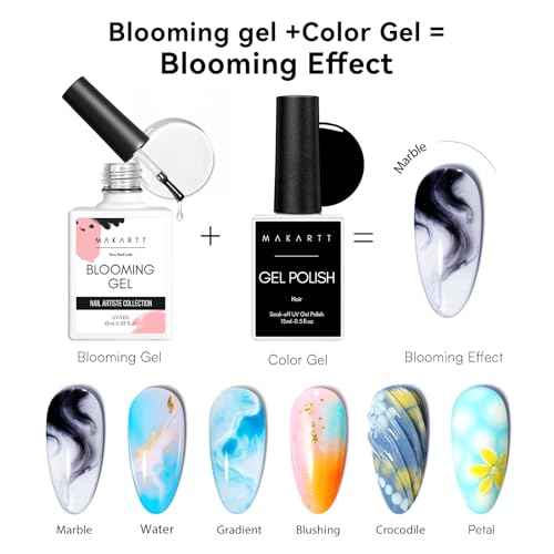 Makartt Blooming Gel & 3D Gel Nail Art Kit: Clear DIY Nail Art Supplies for Watercolor Marble Spreading Effect & 3D Drawing Molding Sculpture Gems and Decoration, UV LED Soak Off 15ml