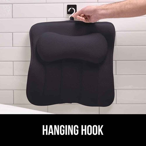 GORILLA GRIP Bath Pillow for Tub with Powerful Suction Cups, Headrest Pillows for Neck and Back Support, Machine Wash, Bathtub and Hot Tub Accessories, Relaxing Spa Gift Essentials for Women, Black