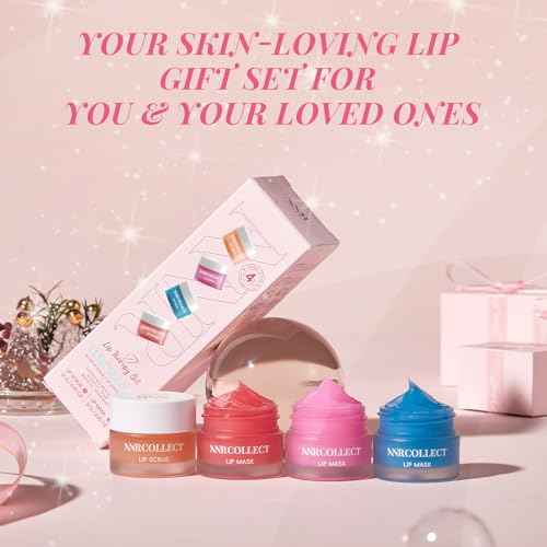 Lip Mask Set, 1 Lip Scrub +3 Overnight Lip Mask, Lip Glowy Balm and Scrub for Women, Exfoliating and Hydrating Dry, Chapped, Crack Lips, 4 Pack Lip Skincare Gift Set