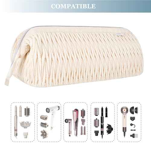 Dyson Airwrap Travel Case for Shark Hair Dryer Airstraight Flex Style Hair Attachment Tool Organizer Accessories Air Wrap Flat Curling Iron Carrying Case (Beige)