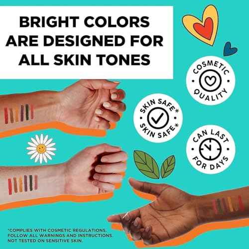 BodyMark Expansion Pack Temporary Tattoo Marker for Skin, Premium Brush Tip, 6 Count Pack of Assorted Colors and Stencils, One Eraser Touch Up Pen, Skin-Safe Temporary Tattoo Markers Set