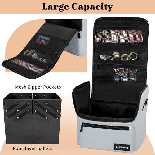 Makeup Travel Train Case, Black Makeup Carrying Organizer Bag, 4 Tier Professional Organizer Case with Straps Pockets for Make Up Nail Tools