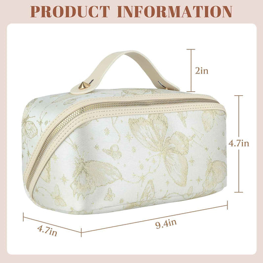 KEYPOWER Large Capacity Cosmetic Bag with Butterfly Pattern Travel Makeup Bag Portable Toiletry Bag with Handle for Women (White)
