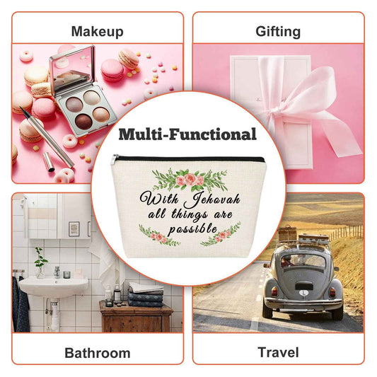 Christian Gift Baptism Gift for Women Jehovah Makeup Bag for Her Motivational Saying Cosmetic Bag Jehovah Witness Present Religious Birthday Easter Present for Friends Wife Sister Zipper Travel Pouch
