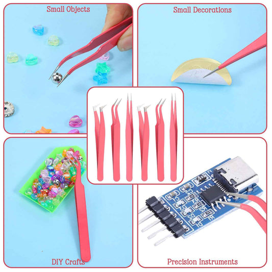 6 Pack Lash Extension Tweezers, Lash Tweezers For Eyelash Extensions, Straight and Curved Eyelash Tweezer, Fiber Tip Lash Tweezer for Professional Eyelash Extension Artists, Girls, Women