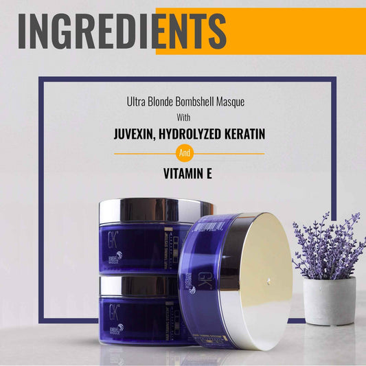 GK HAIR Global Keratin Ultra Blonde Bombshell Masque (7.05 Fl Oz/200 g) Semi-Permanent Long Lasting Hair Toning Color Pigments Moisturizing Styling and Coloring Mask for All Hair Types Unisex