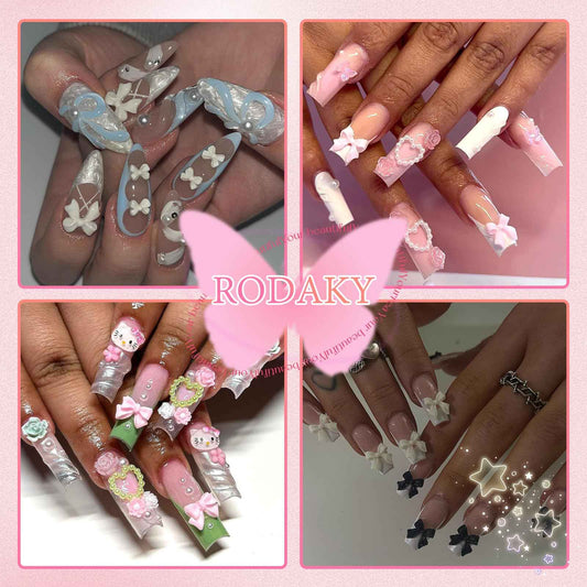 300Pcs Bow Nail Charms and Flatback Pearls,Rose Red Bowknot 3D Cute Nail Charms for Acrylic Nail Supplies Design,3-5mm White Half Pearls for Nail Jewelry DIY Crafts Nail Art Decoration Accessories