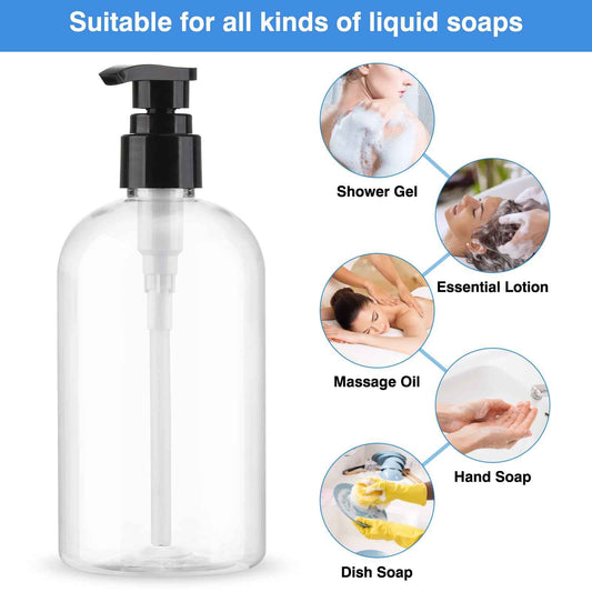 Empty Pump Bottles Dispenser 2 Pack 300ml/10.15oz. Clear Plastic Pump Bottle Dispenser for Essential Oil Soap Lotion Shampoo