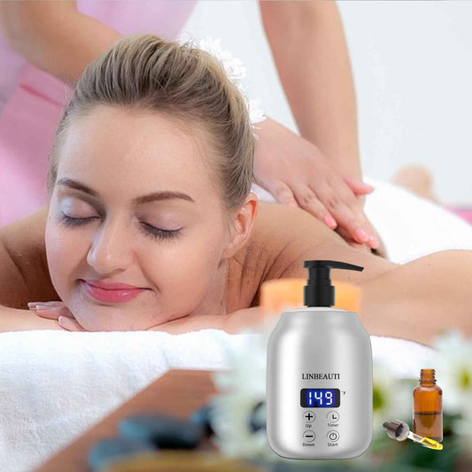 LINBEAUTI Massage Oil Warmer with Two Oil Bottle Dispenser, Lotion Bottle Warmer, Smart Touch Key Electric Warm Lotion Dispenser, Lube Gel Cream Warmer for Home Pro Salon Spa Massage (silver)