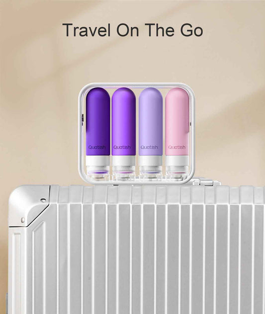 Quatish Travel Bottles for Toiletries, Original Patented Leak Proof Travel Size Containers, 3 oz Tsa Approved Silicone Shampoo and Conditioner Bottles, 4 Pack,,Purple