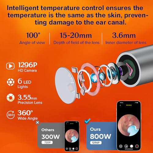 Ear Wax Removal - Earwax Remover Tool with 8 Pcs Ear Set, Ear Cleaner with 2400P HD Camera with 6 LED Lights, Built-in WiFi,Ear Cleaning Kit for iOS and Android