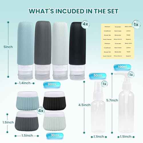 Travel Bottles for Toiletries TSA Approved 3oz Leak Proof Travel Size Toiletries, Travel Essentials with Toiletry Bag for Cosmetic Shampoo Conditioner Lotion