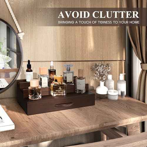 EOSAHR Farmhouse Wooden Cologne Organizer for Men - 3 Tier Perfume Stand Organizer for Dresser with Storage Drawer and Hidden Compartment - Great Gift for Men (Retro Brown)