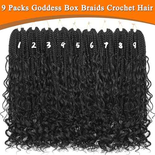 9 Packs Boho Goddess Box Braids Crochet Hair Bohemian Box with Curly Ends Pre-Looped Synthetic Hair Extensions for Black Women(24 Inch,1B)